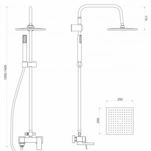 Baterija za tuš sa preklopnom lulom MINOTTI QUADRA NEW sa komplet usponskim tušem